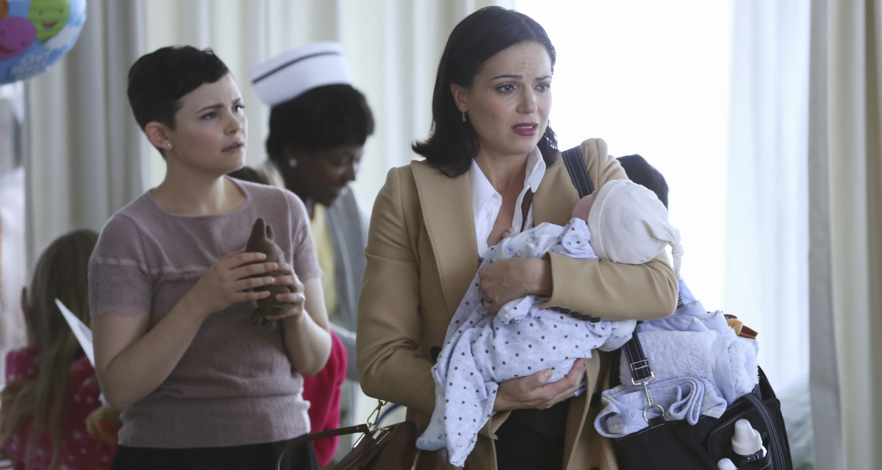 Poco dopo, Regina incontra Mary Margaret nell’ospedale, mentre è al telefono con Sidney Glass. La donna affida alla volontaria il neonato per continuare la chiamata, ordinando al giornalista di cercare il nome della madre di Henry. In braccio a Mary Margaret intanto Henry ha smesso di piangere, ma riprende non appena Regina lo afferra.